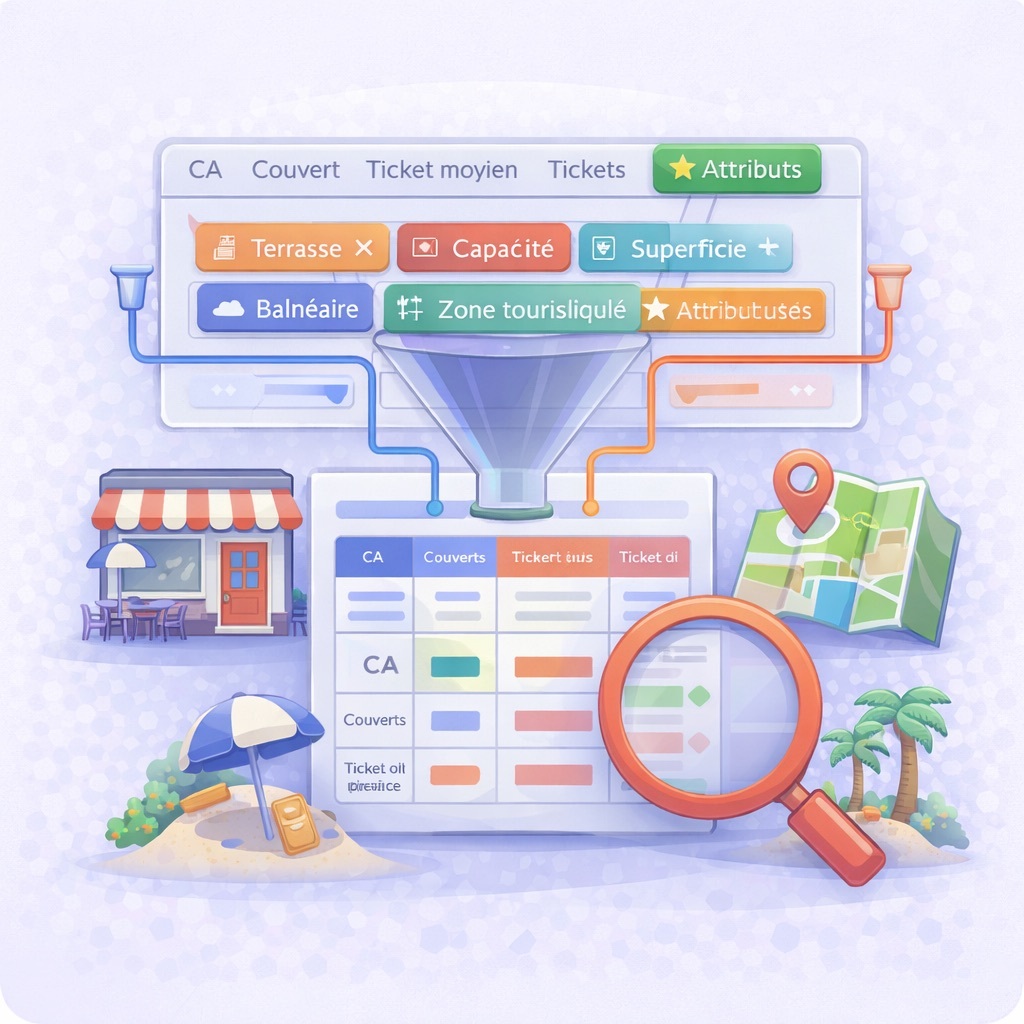 Analysez vos performances par caractéristiques (terrasse, localisation, capacité…) et identifier les véritables leviers de votre activité, afin de prendre des décisions basées sur des faits plutôt que sur des intuiti