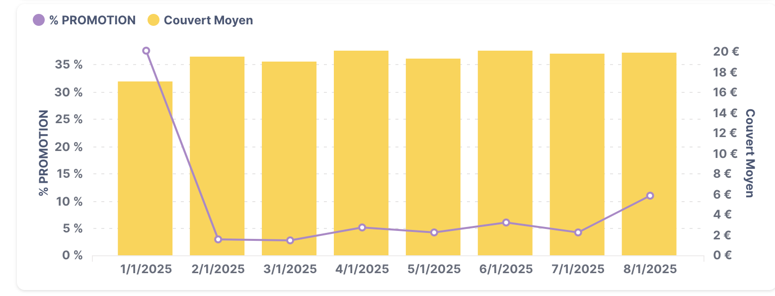 Analysez également l’évolution du couvert moyen : plus les promotions sont utilisées, plus le couvert moyen peut baisser.
